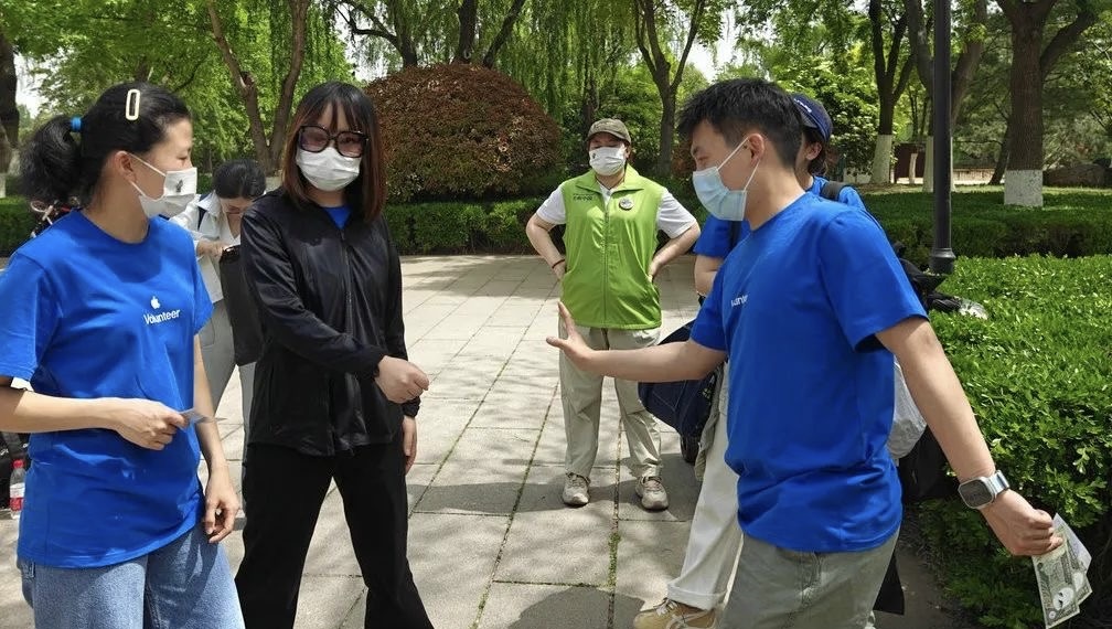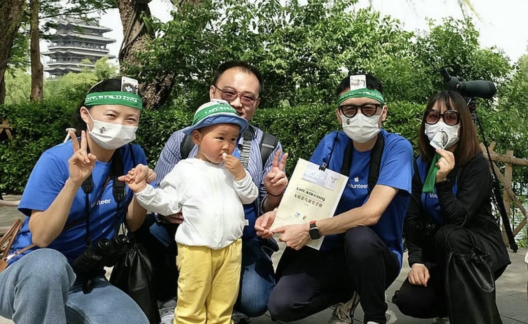 2025年4月16日,Apple Volunteer伙伴带着孩子们,一同参加了大明湖无痕赏鸟活动。提供赏鸟活动的无痕中国环境教育中心,也是国际鸟联“Birding Unites赏鸟同心”公众赏鸟活动、世界自然基金会“发现身边的自然”公众生物多样性教育项目、中国生物多样性保护和绿色发展基金会BOCN(邻里生物多样性保护)项目的合作伙伴。